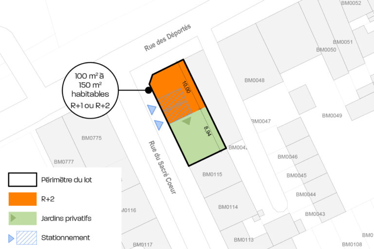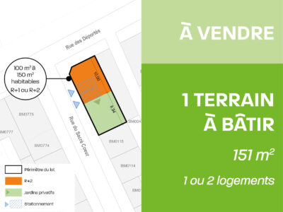 À l’angle de la rue des Déportés et de la rue du Sacré Cœur à Armentières, La fabrique des quartiers vous propose ce terrain à bâtir de 151m². Ce terrain est Idéal pour construire votre future maison avec jardin ou investir à quelques kilomètres de Lille.
